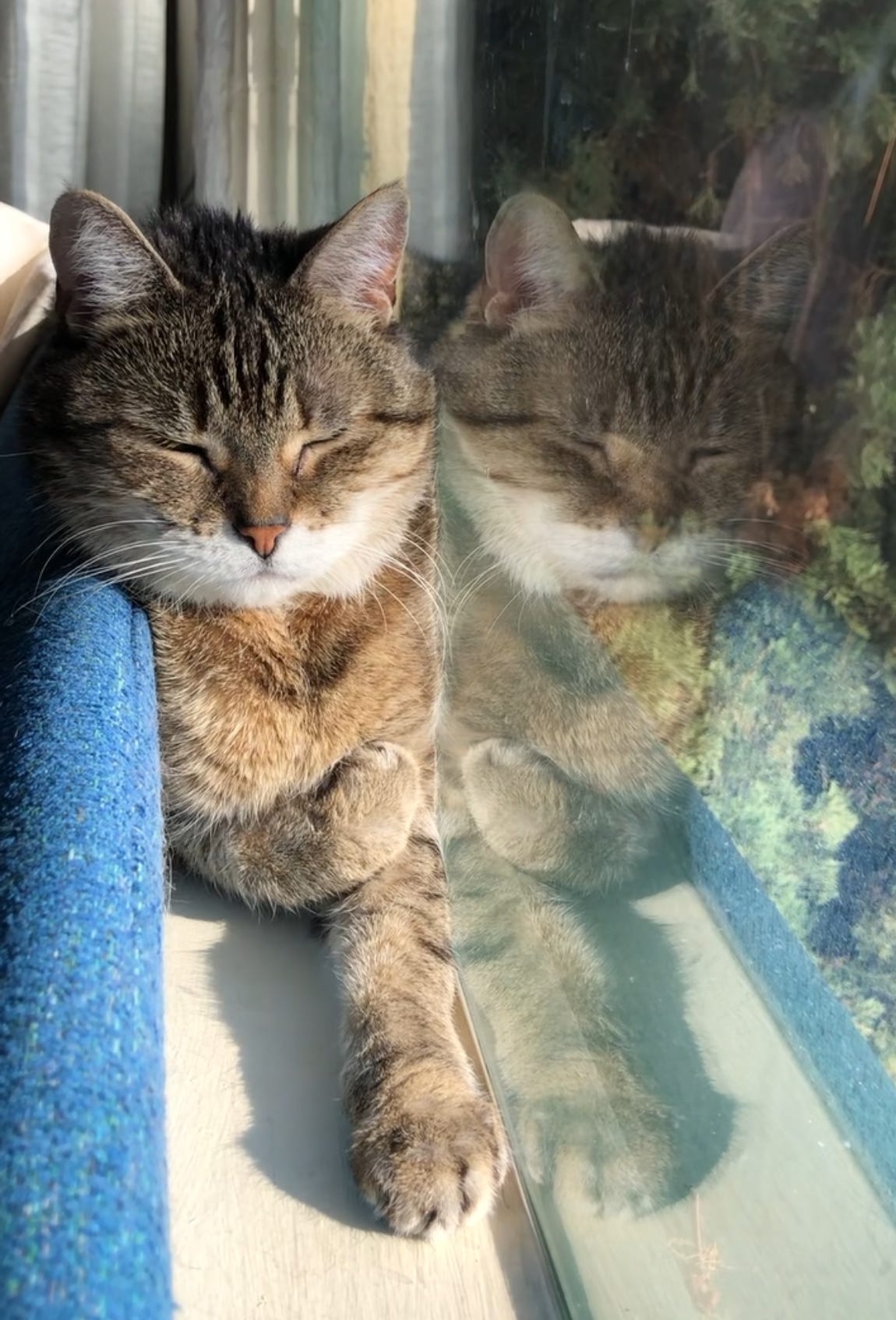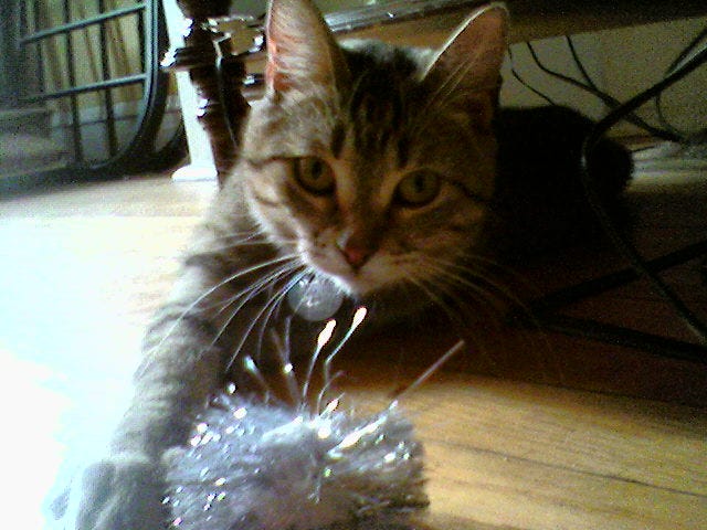 The baby started walking, and babbling. The baby would sing to the cat, because she’d heard me sing to the cat. The cat would spend most of the day sitting in the window waiting for the sun, or chirping at neighborhood cats.