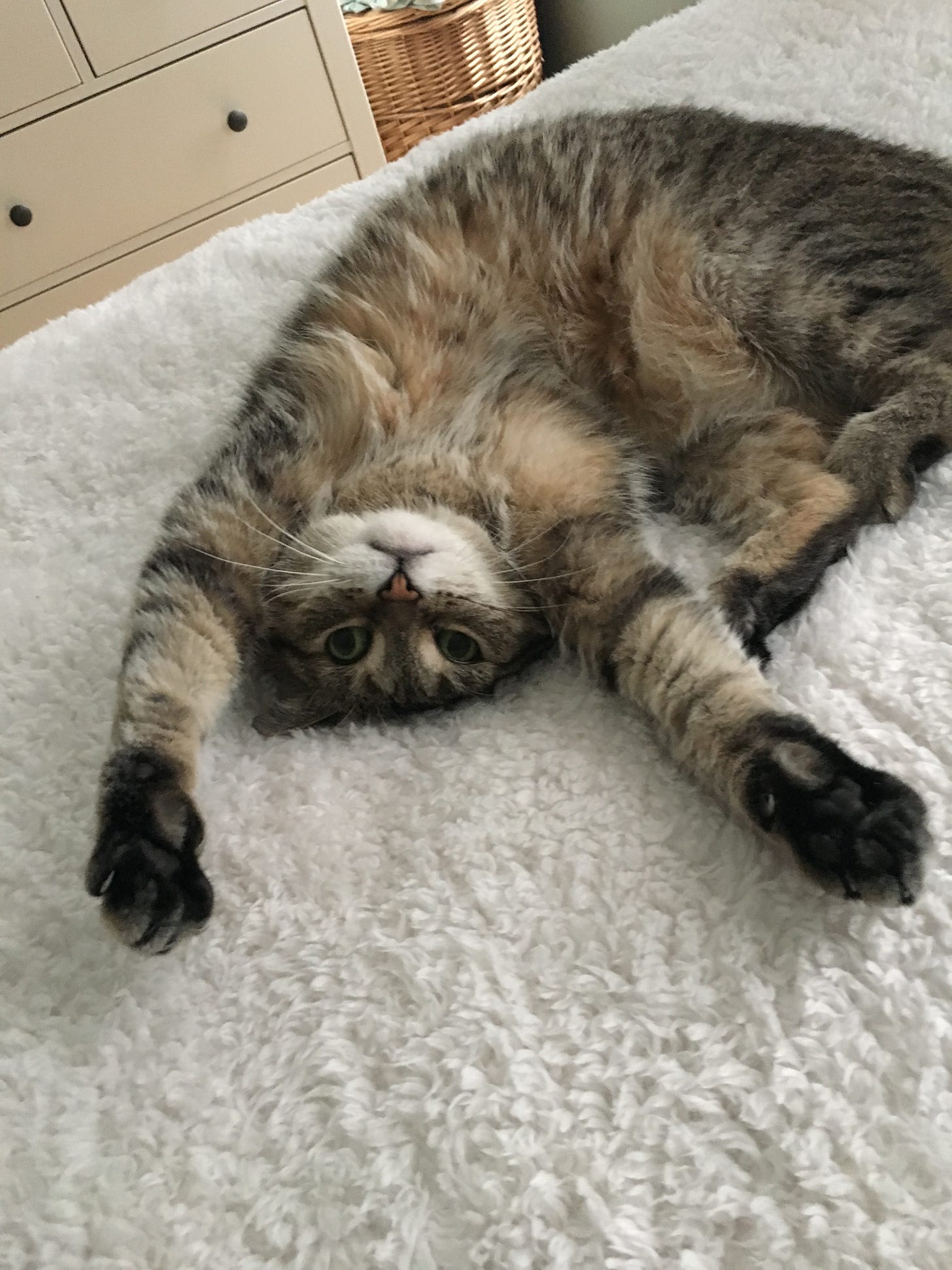 She loved the big bright place in Hancock Park. I would let her sun herself on the balcony while I got ready in the morning, she’d roll around on the carpet on the floor of my bedroom. She stretched out on the dining room table.
