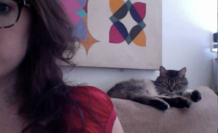 My boyfriend lost his job in the ongoing turmoil of the financial crash, and moved in with me to save money, which Eleanor loved because that meant that there was a person to bother at home all day long. She’d sleep on his bookshelf while he studied for the CFA exam. She shed her undercoat on his desk. She spilled his Magic: The Gathering cards all over the living room, because his card box is where he kept his marijuana, and Eleanor loved the smell of marijuana. Which in retrospect might have been why she liked him so much.